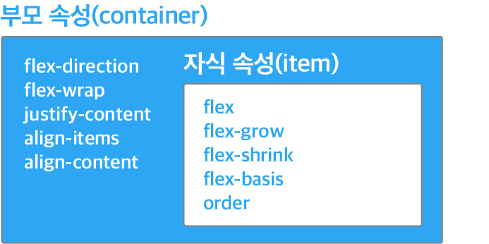 - flex는 부모를 위한 속성과 자식을 위한 속성들로 나눠져 있다!