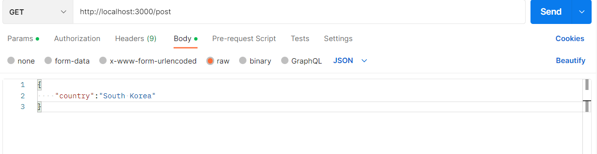 "get은 body에 data를 넣어 보낼 수 없다" 였다..!